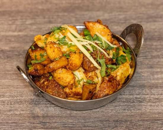 Curried cauliflower and potatoes sautéed with ginger, cumin, tomatoes and cilantro