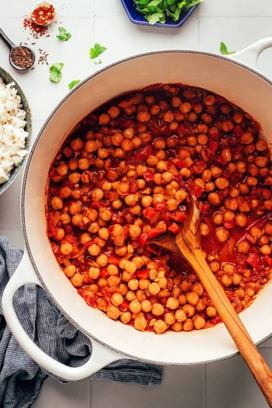 Chickpeas slow - cooked ginger, garlic, with onion, fresh tomatoes, cilantro and spices