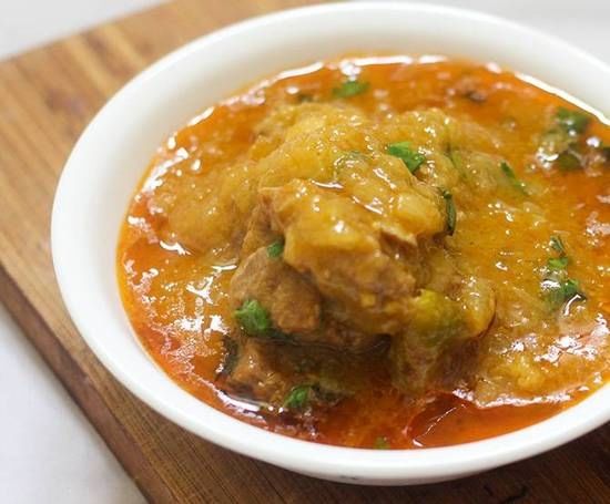 Hot and tangy curry sauce with chunks of potato, spiced with hot chilli powder paprika, black pepper, cloves, cumin, coriander add cinnamon with cayenne peppers
