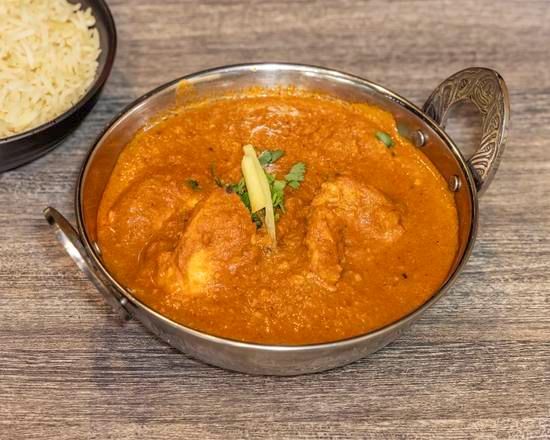 Pieces of chicken baked in tandoor and cooked in butter and cream sauce