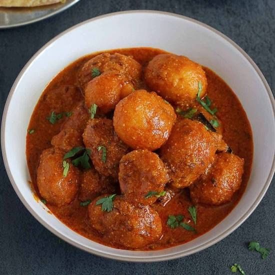 Baby potatoes simmered in a spicy yogurt and creamy sauce